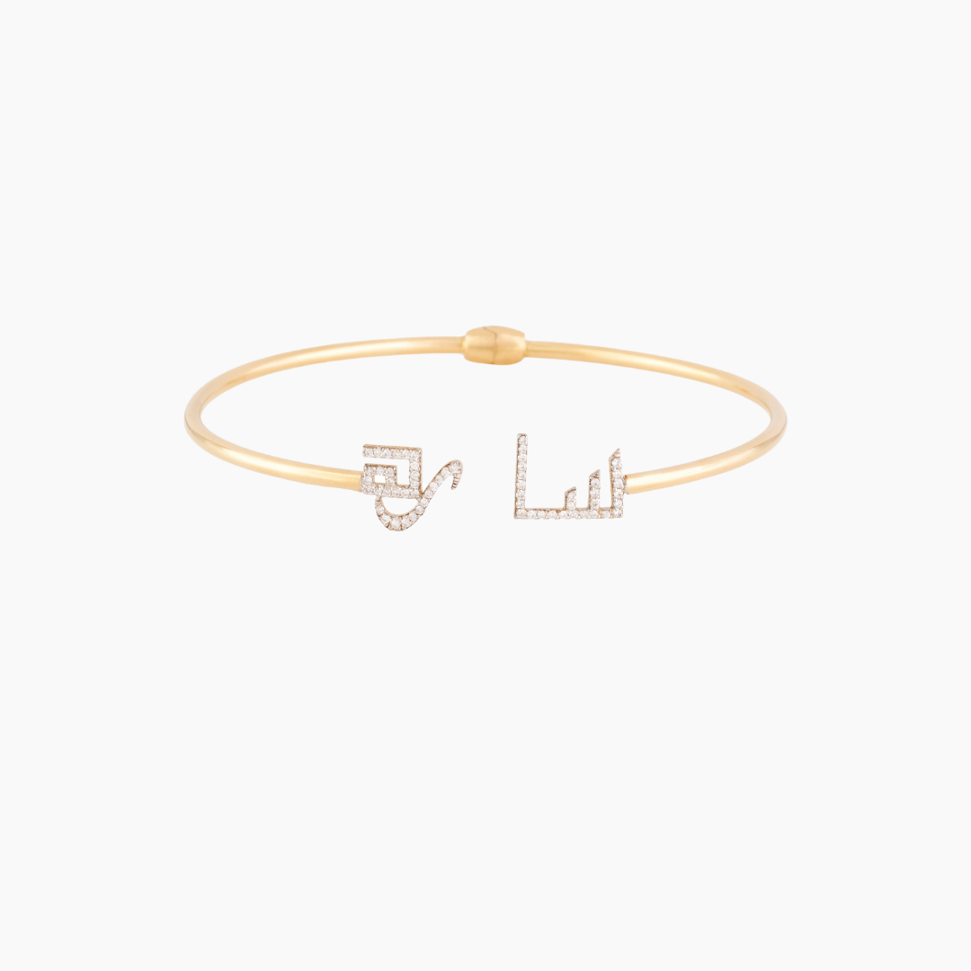 18kt yellow gold bangle with white Diamonds.