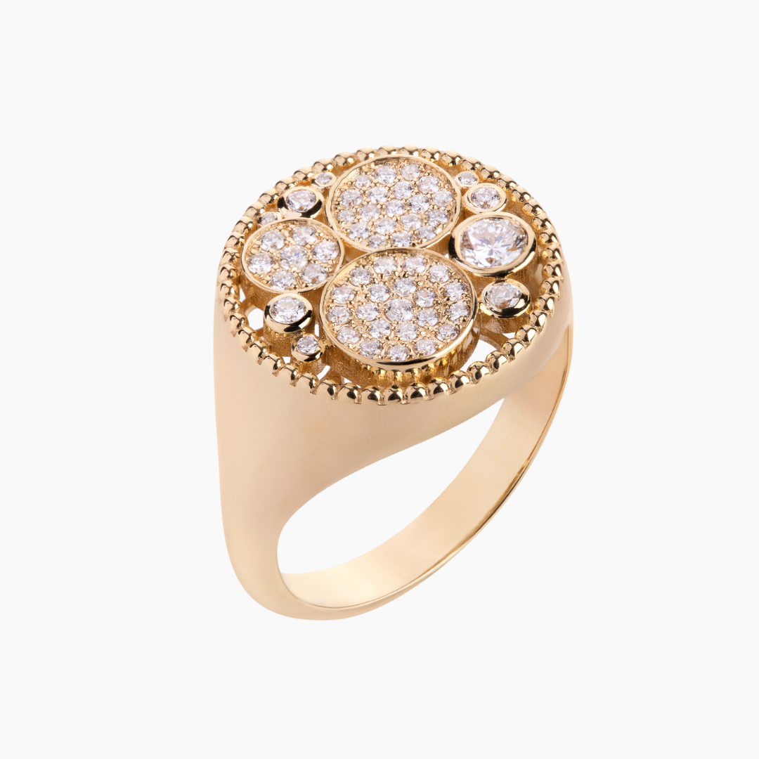 18kt yellow gold ring with white Diamonds.