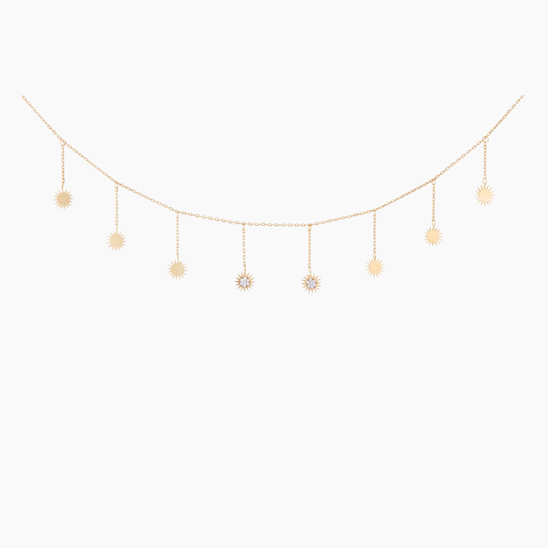 18kt yellow gold soleil choker necklace set with Diamonds.