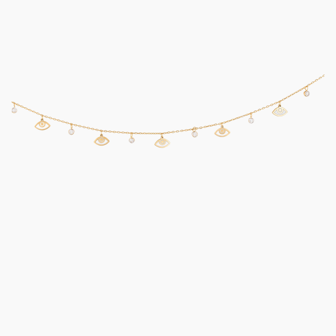18kt yellow gold evil eye choker necklace with white enamel and white Diamonds.