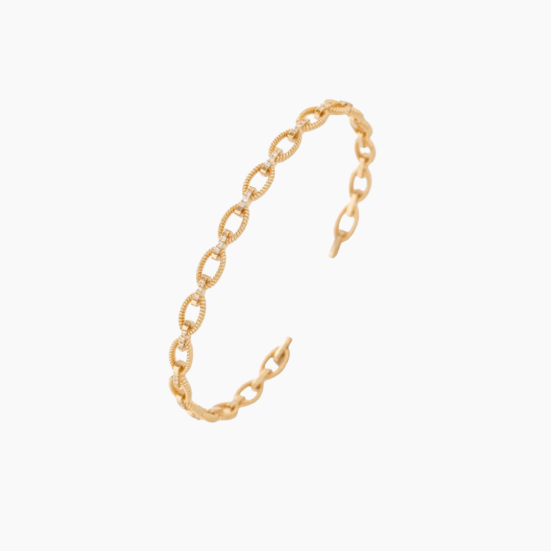 A fun and trendy piece, to add texture and shine to your layered bracelets.