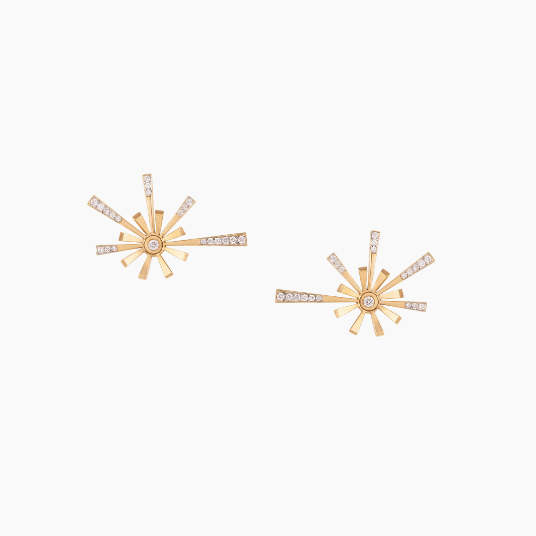 18kt yellow gold flower bloom stud earrings set with white Diamonds.