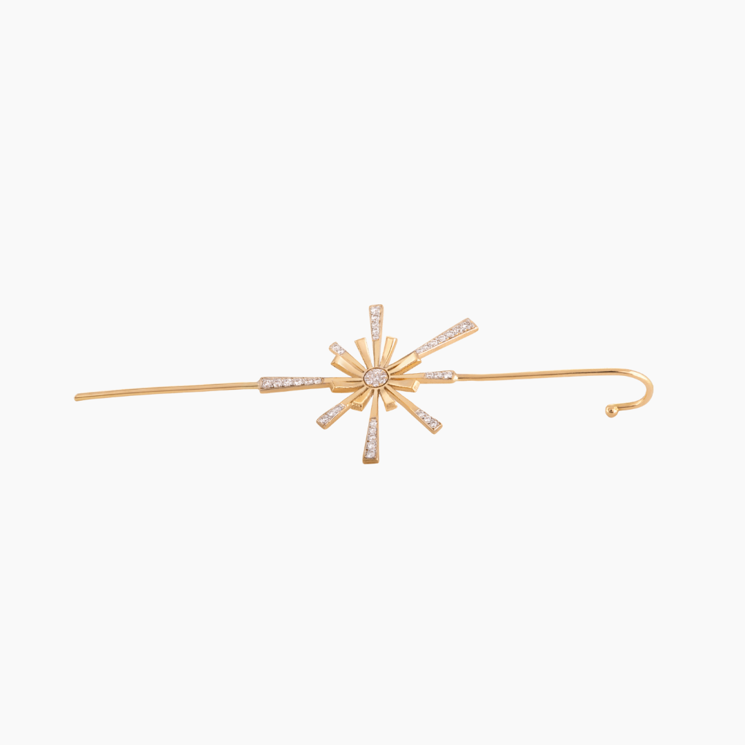 18kt yellow gold modern flower bloom ear wrap set with white Diamonds.