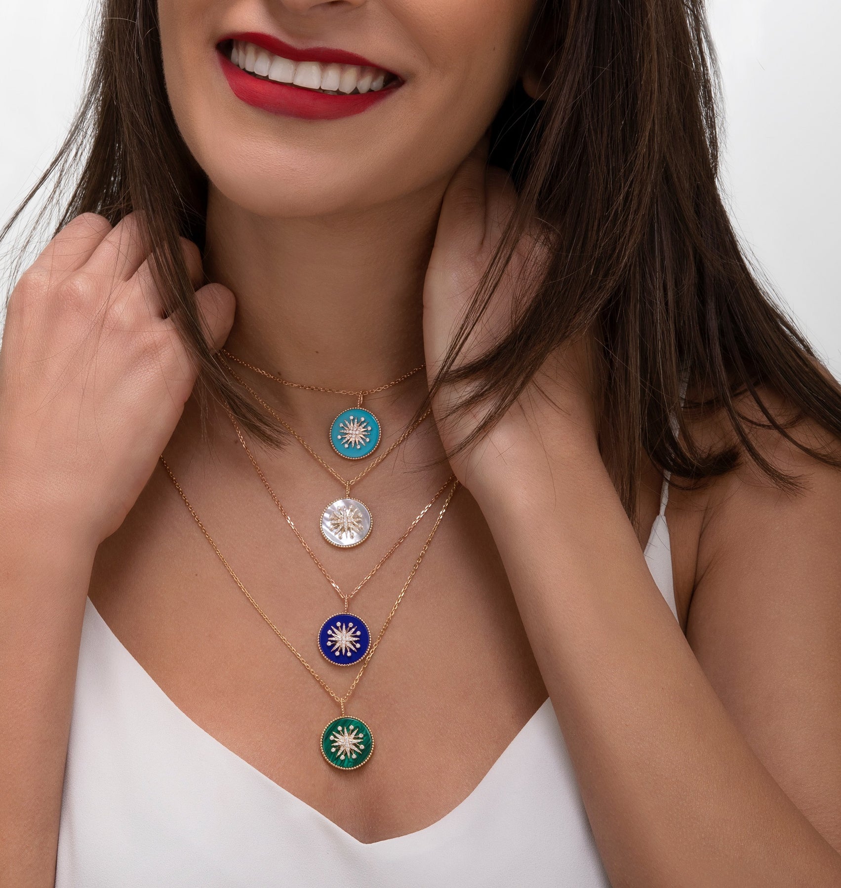 Handcrafted in 18kt yellow gold, this piece is both bold and refined — perfect for adding a touch of color and sophistication to any look. Wear it solo as a statement or layer it with other necklaces from our collection for a luminous, contemporary style.