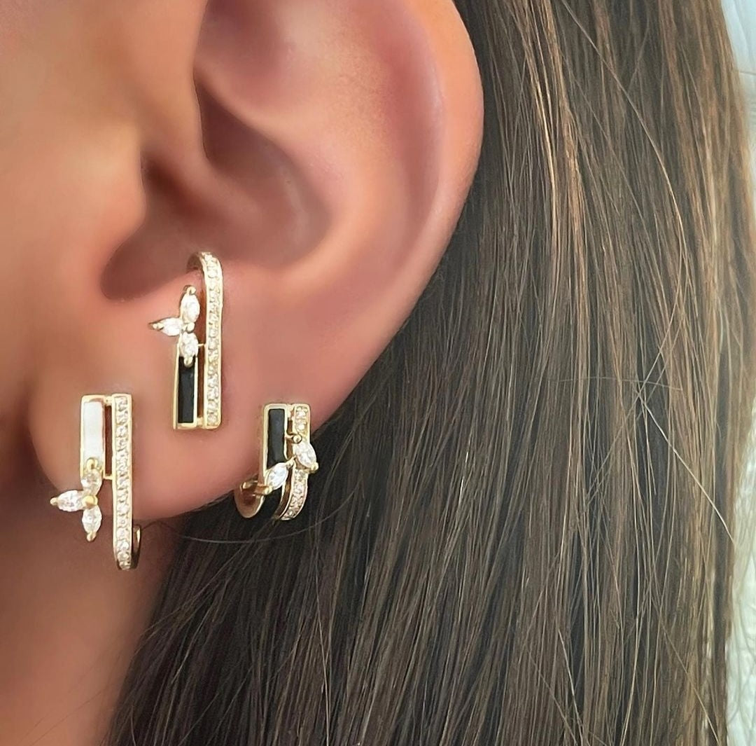 18kt yellow gold earrings with black and white enamel and white Diamonds.