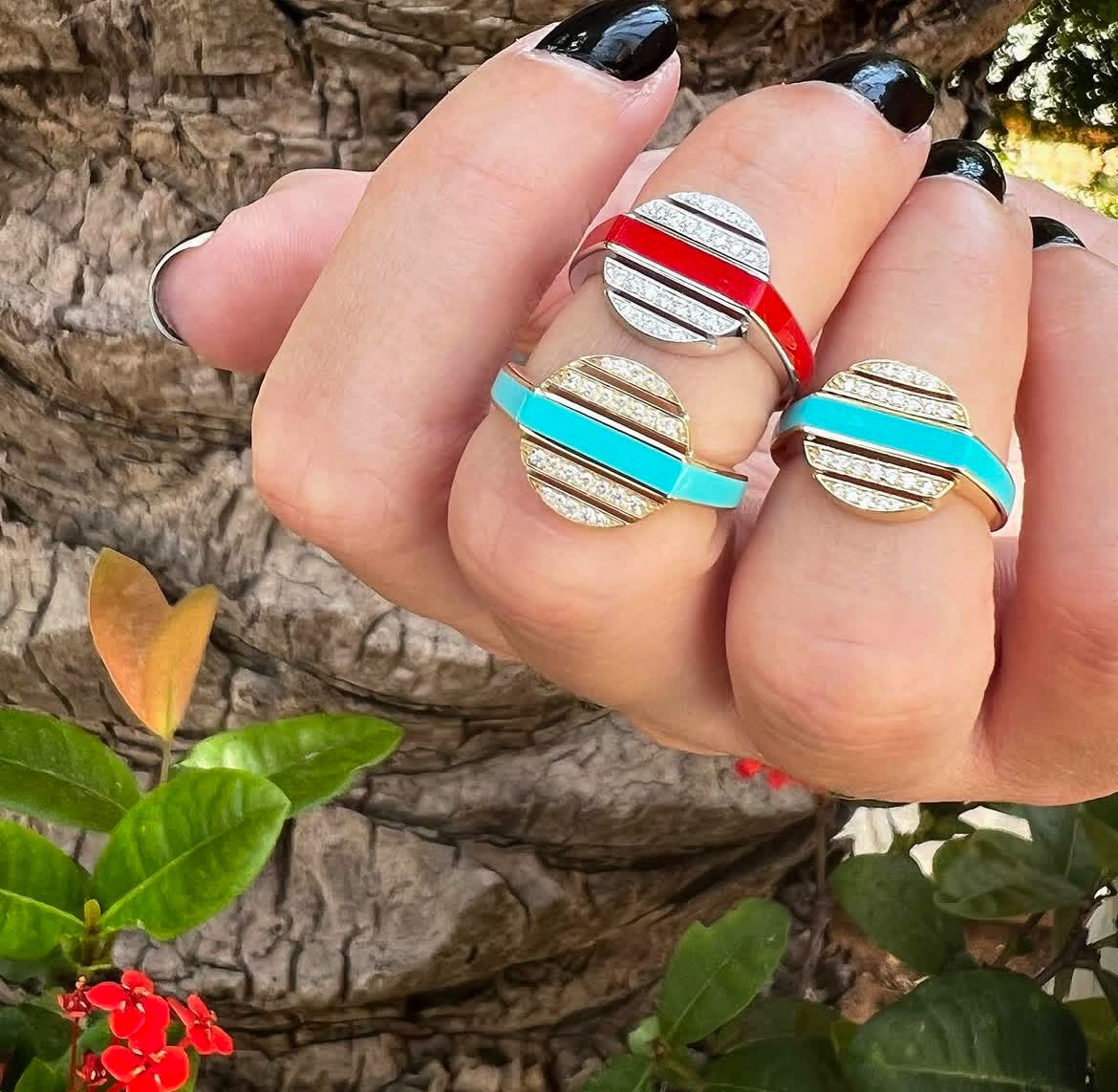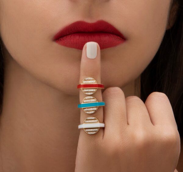 Vibrant and refined, this 18kt yellow gold ring features rich red enamel accented with 0.1C of sparkling white Diamonds. A timeless piece that adds a pop of color and sophistication — perfect for stacking or wearing solo.
