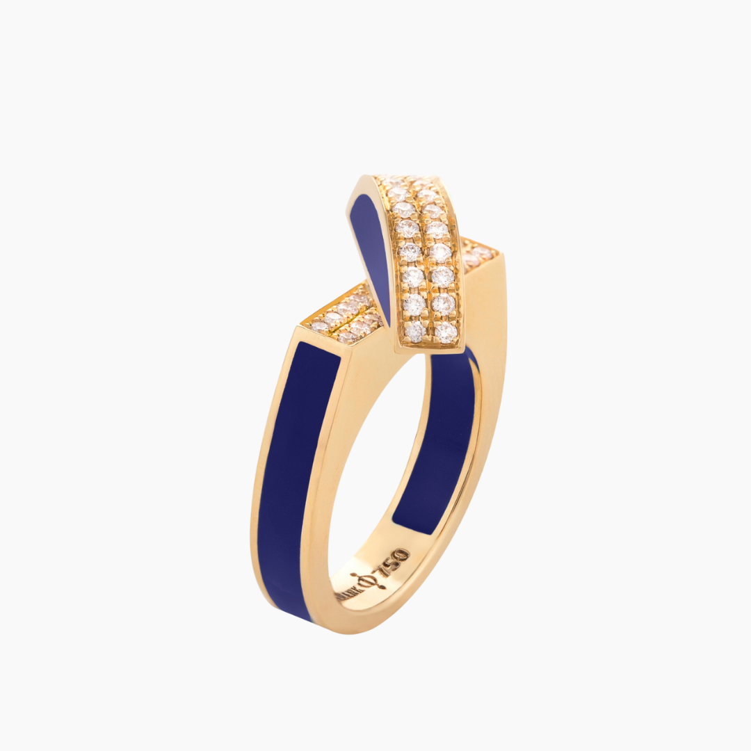 Innovative and elegant, this 18kt yellow gold flip ring combines vibrant enamel with 0.3C of sparkling white Diamonds. Its unique rotating design reveals two captivating looks — one with vivid color, the other with brilliant Diamonds. Perfect worn solo or stacked for a bold, modern statement.