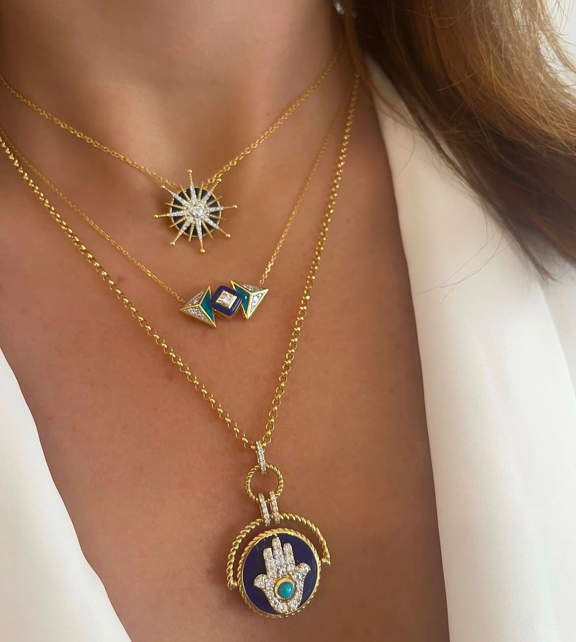 A fun and trendy piece to add texture and shine to your layered necklaces