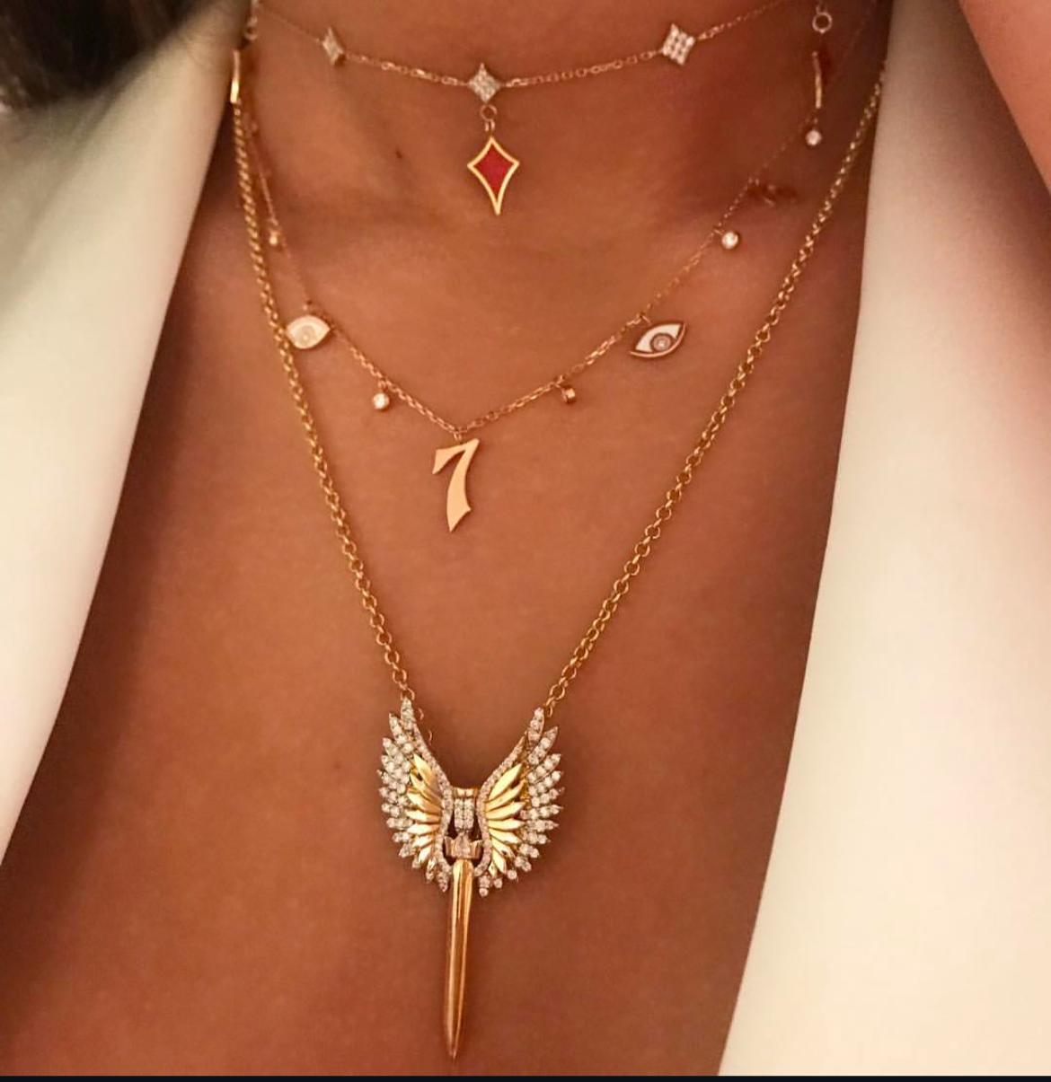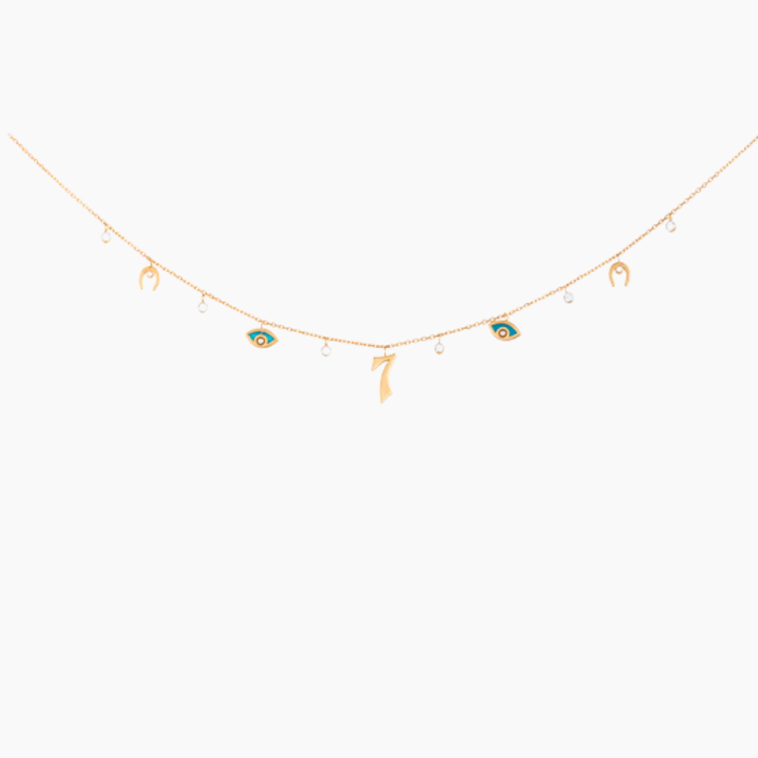 18kt yellow gold charm necklace with white Diamonds.