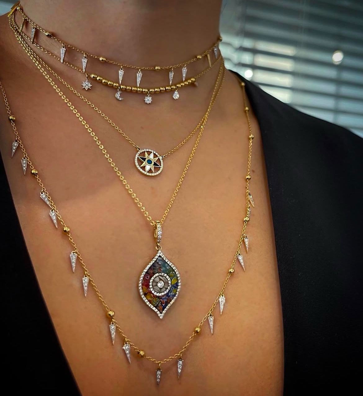 A fun and trendy piece, to add texture and shine to your layered necklaces.