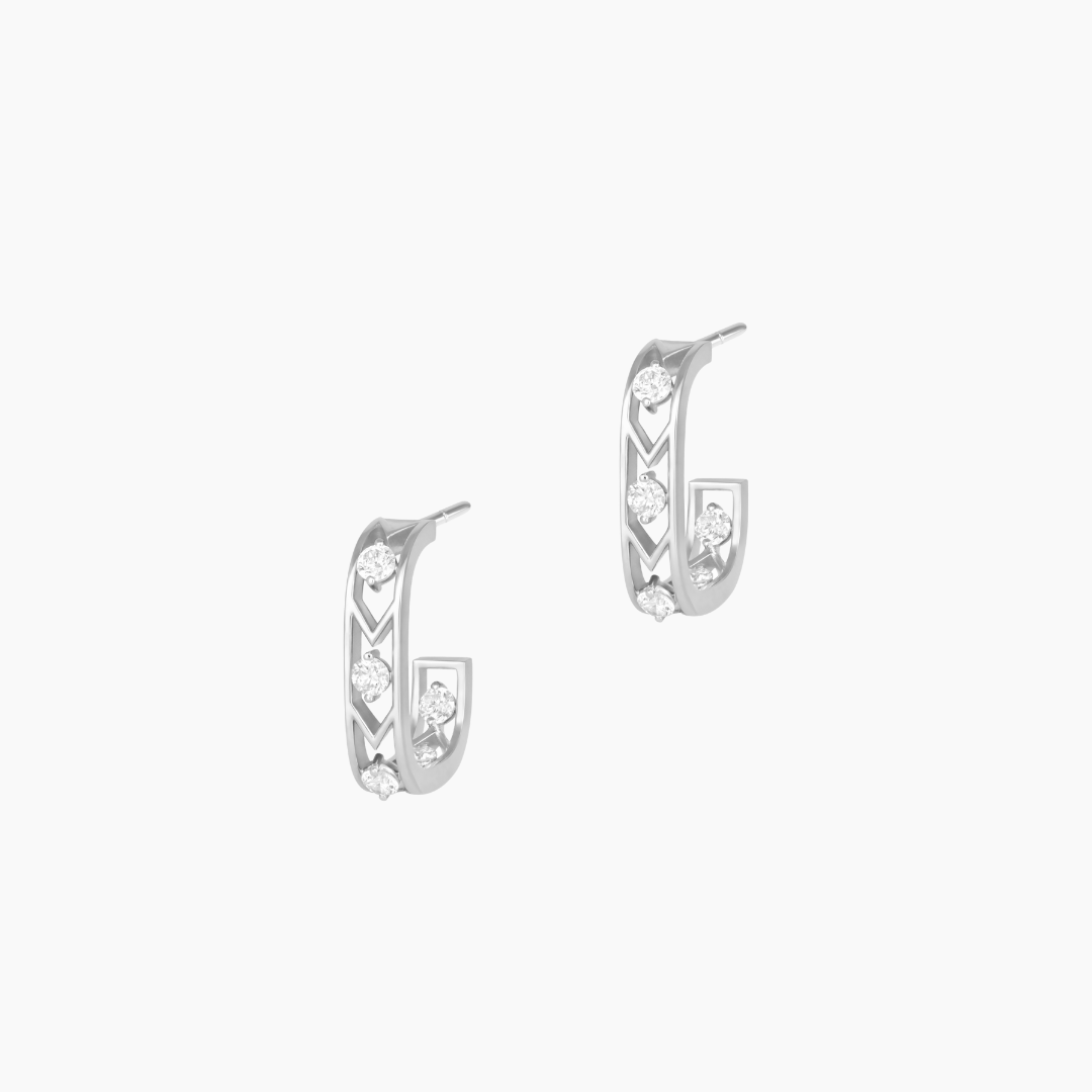 Where geometry meets grace and every curve whisper elegance, these earrings are a refined expression of the Dualities Collection. Designed to celebrate contrast and harmony, they reflect the idea that every woman embodies both strength and softness. Crafted in luminous 18k white gold and set with shimmering diamonds, their sculptural form captures modern femininity with timeless sophistication. A graceful statement for everyday luxury or elevated occasions.