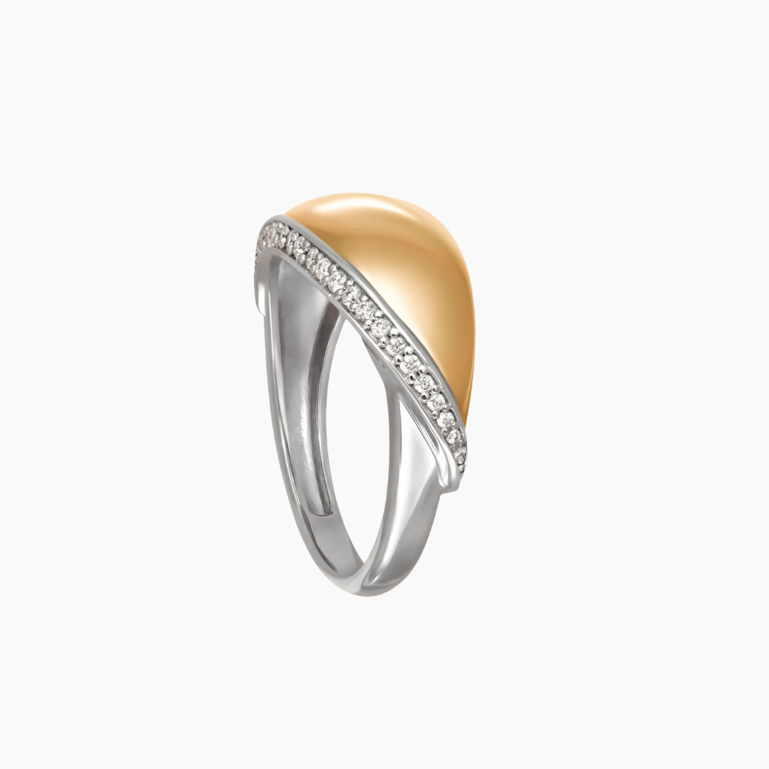 Designed with fluid lines and modern sophistication, this two-tone gold ring embodies the essence of duality—bold yet graceful, classic yet contemporary. Perfect for everyday elegance or elevated occasions, it is a timeless statement piece that reflects the multifaceted nature of every woman.