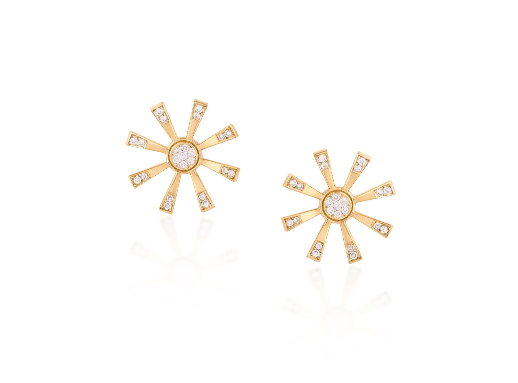 18kt yellow gold bloom stud earrings with white Diamonds. White Diamond: 0.1C