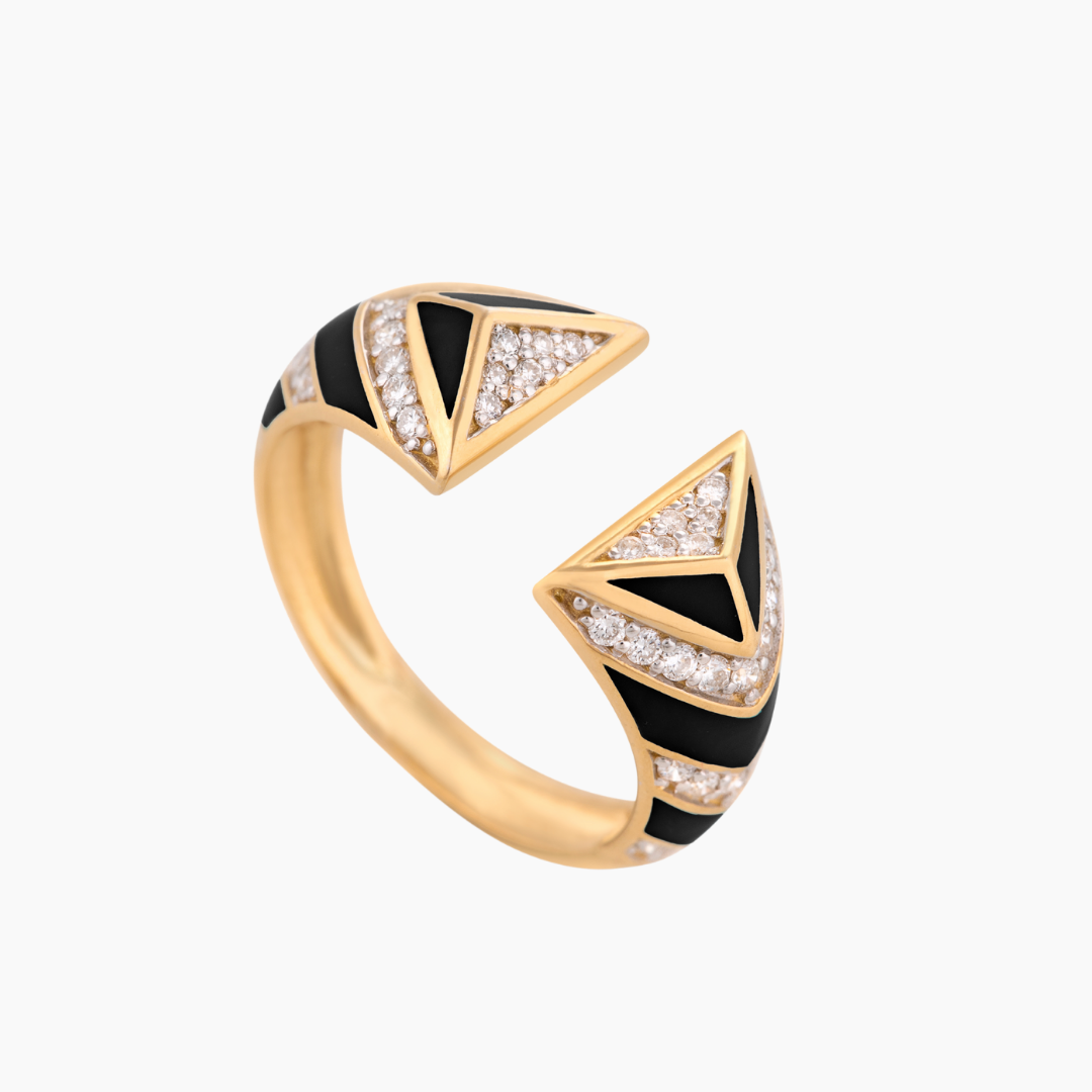 18kt yellow gold ring with black enamel set with white Diamonds.